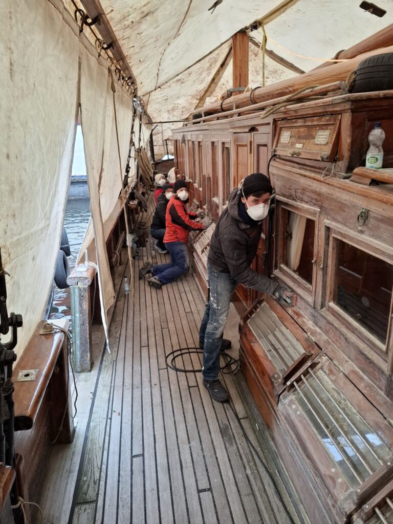Gemeinsam mit erfahrenen Winterarbeiter/innen unterstützt du die Instandhaltung zwei unserer Traditionsschiffe. Dabei bekommst du praktische Einblicke in Holz-, Rigg- und Takelarbeiten und lernst Bereiche der Schiffe kennen, die man selten zu sehen bekommt. Vorkenntnisse sind nicht erforderlich – jede/r ist willkommen. Neben der Arbeit bleibt natürlich ausreichend Zeit für nette Gespräche und gemeinsame Abende an Bord und auf dem Vereinsgelände.