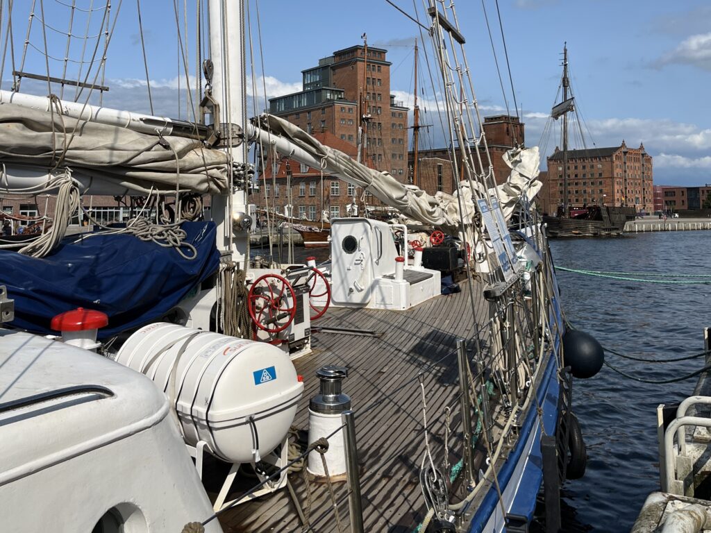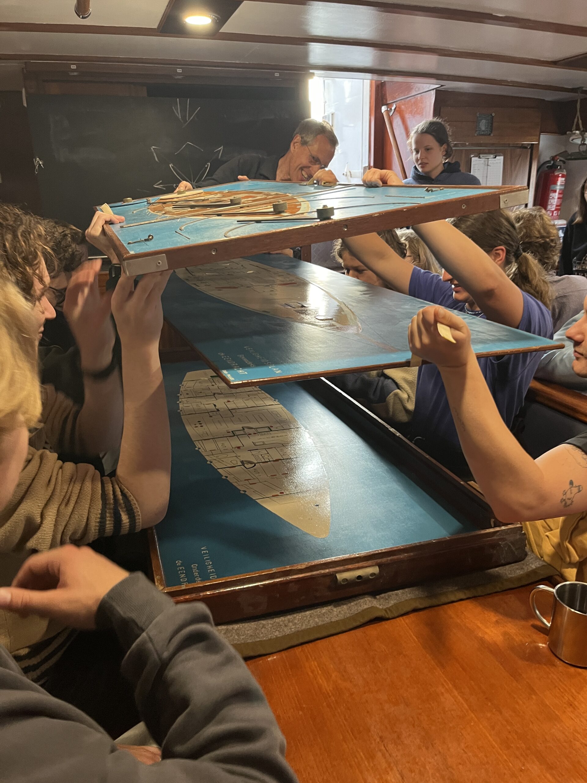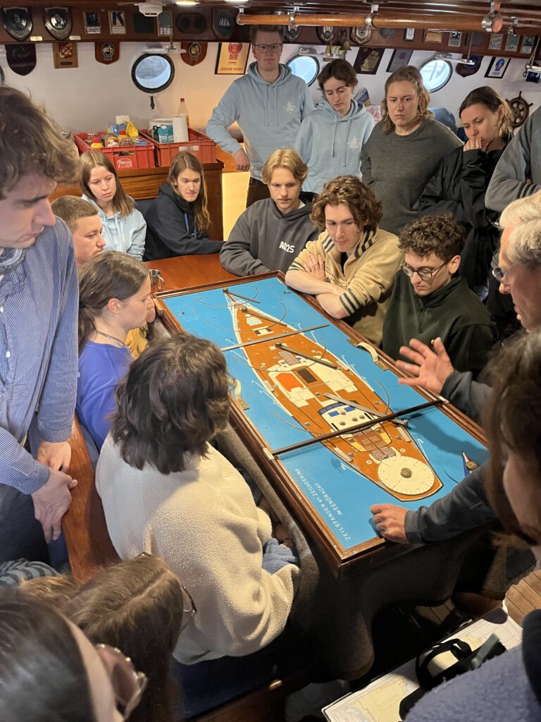 Freitag Nachmittag sind die 30 Teilnehmer:innen in Wismar an Bord gestiegen, haben ihre Kojen bezogen und das Schiff ein wenig kennengelernt. Nach der obligatorischen Sicherheitseinweisung und einer kurzen Theorieeinheit an dem großen Lernmodell hieß es für die meisten bereits: Zeit für die Koje, denn am Samstag sollte um 05:00 Uhr in der Früh abgelegt werden.