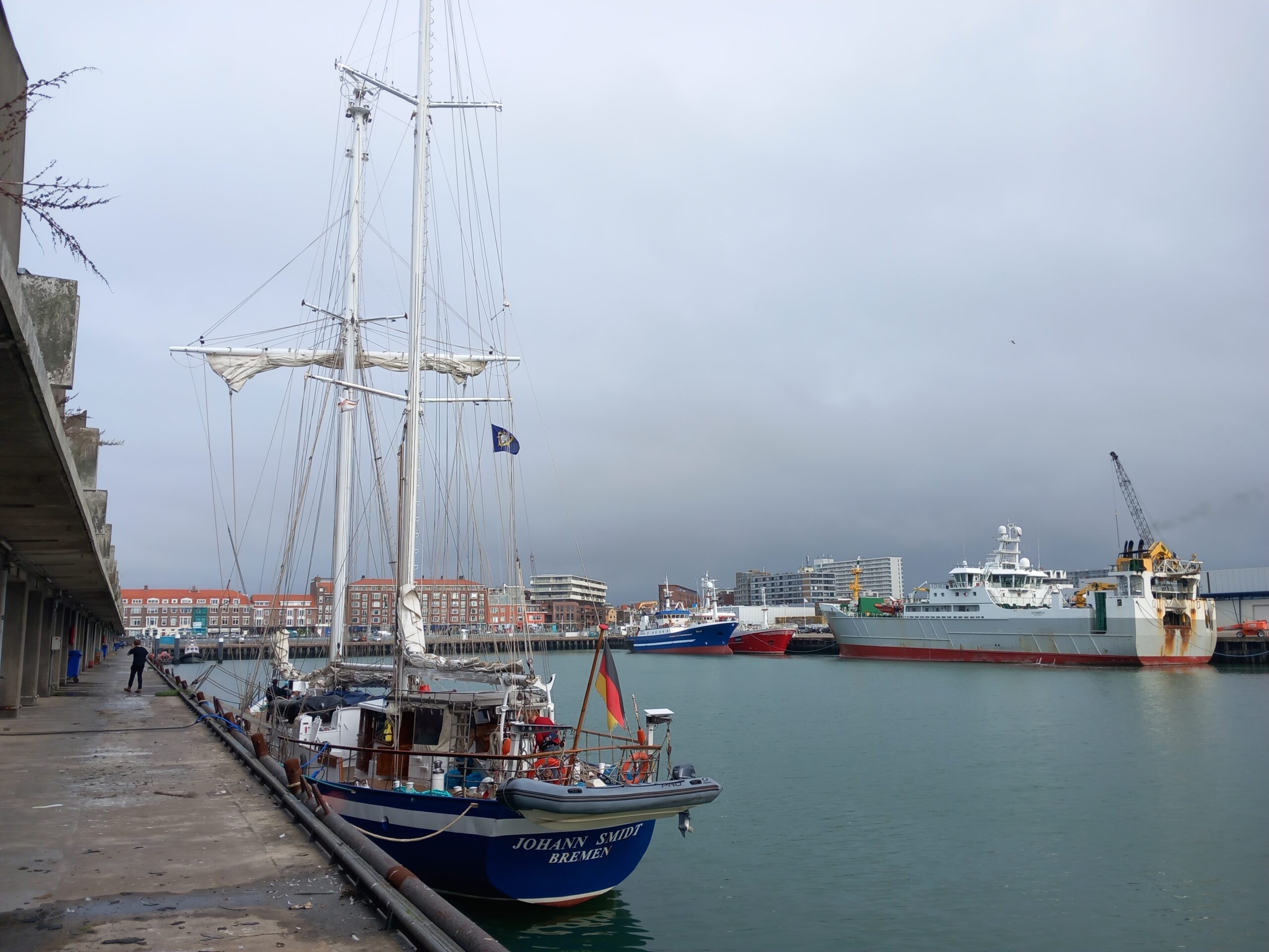 Am Nachmittag und Abend gab es Besuch von einigen ehemaligen niederländischen Eendracht-Fahrern. Diese fühlten sich an Bord sehr wohl. Nach einem köstlichen Abendessen (Labskaus), zubereitet durch unser Spitzenkombüsenteam Peter und Bart, wurde in schönen Erinnerungen geschwelgt. Dieser kurzweilige Abend verging recht schnell. Am Samstag, 18. Oktober, wurden weitere Schiffsarbeiten durchgeführt und zum Abendessen bekochten die OC-Lehrer die wenigen noch an Bord Verbliebenen. Und damit endete der Überführungstörn 3908 in Scheveningen/NL.