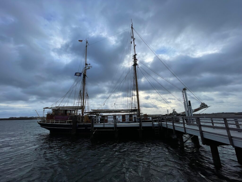 Am Samstag den 25.10. ging es mal wieder an Bord der Seute Deern, jedoch nicht für einen normalen Törn, sondern für die Überführung von Eckernförde nach Svendborg in die Werft „Ring Andersen“. Da sich die meisten Besatzungsmitglieder schon kannten, gab es eine herzliche Begrüßung, gefolgt von einigen organisatorischen Gesprächen in Sachen Verproviantierung. Nach dem geklärt war, was alles an Proviant benötigt wurde, machte sich eine kleine Gruppe bei bestem norddeutschem Regenwetter, auf den Weg in Richtung Supermarkt. Als sowohl die Einkäufe als auch die Einkäufer wieder an Bord waren, gab es die obligatorische Sicherheitseinweisung gefolgt von einer ersten Aussicht für die nächsten Tage. Aufgrund von schlechtem Wetter lautet der Plan erst am Sonntag auszulaufen. Nach dem Abendbrot ließen wir den Abend noch bei ein paar Gesellschaftsspielen ausklingen.