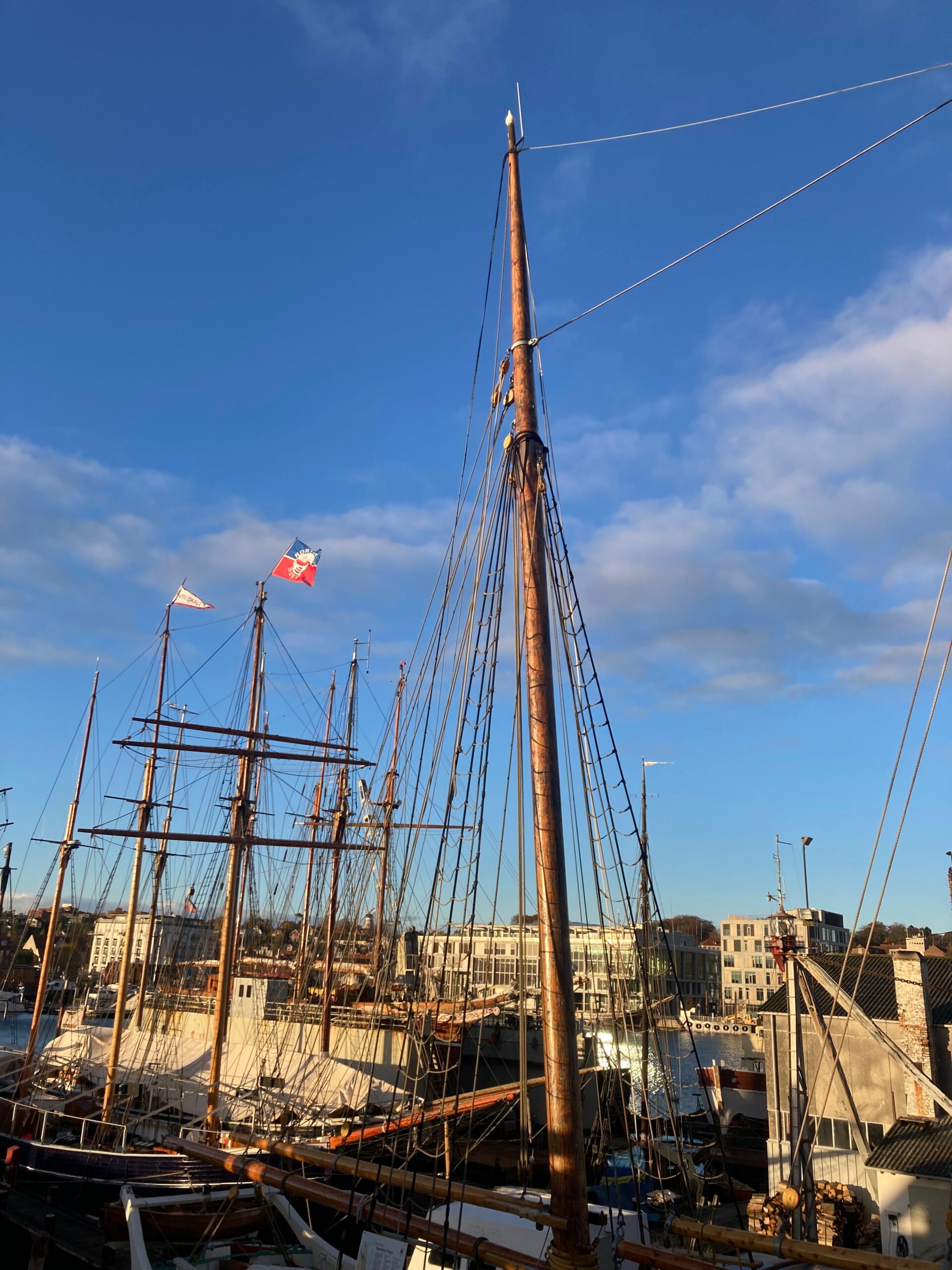 Der Montag begann mit der Entscheidung, aufgrund von mangelndem Wind, erst gegen Mittag weiterzufahren und den Vormittag zum Trocknen und Abschlagen von Besan, Großtopsegel und Außenklüver zu nutzen. Um 14 Uhr ging es dann aus der Schlei raus und weiter Richtung Norden. Nach einem weiteren schönen Segeltag erreichten wir gegen Abend unseren Ankerplatz an und konnten dort, nach dem Segelpacken, ein gemeinsames Abendbrot genießen. Der neue Tag startete etwas unsanft um 7:55 Uhr da die Ankerwache vergessen hatte zu Wecken und nun alles etwas überstürzt war. Nach dem etwas hektischen Frühstück ging es für uns pünktlich um 8:30 Uhr ans Ankerspill zum Frühsport und danach direkt weiter an die verbliebenden Fallen zum Segelsetzen. Als das All Hands beendet war, begann, für meine Wache die normale Routine der Fahrwache. Zum Mittag hatten wir dann, zur Freude aller, die ersten Inseln der Dänischen Südsee querab. Jedoch mussten wir zugleich beobachten, wie mit fortschreitender Tageszeit, auch der Wind zusehends weniger wurde und wir somit gezwungen waren, um noch bei Tageslicht anzukommen, unsere Reise unter Motor fortzusetzen. Durch die nun deutlich erhöhte Reisegeschwindigkeit konnten wir gegen 16 Uhr die Svendborgsund-Brücke bestaunen und uns klar zum Anlegen machen. Ungefähr eine Stunde später lag dann das Schiff sicher vertäut vor dem Slip von „Ring-Andersen“ und damit endete für uns eine wirklich schöne Überführung.
