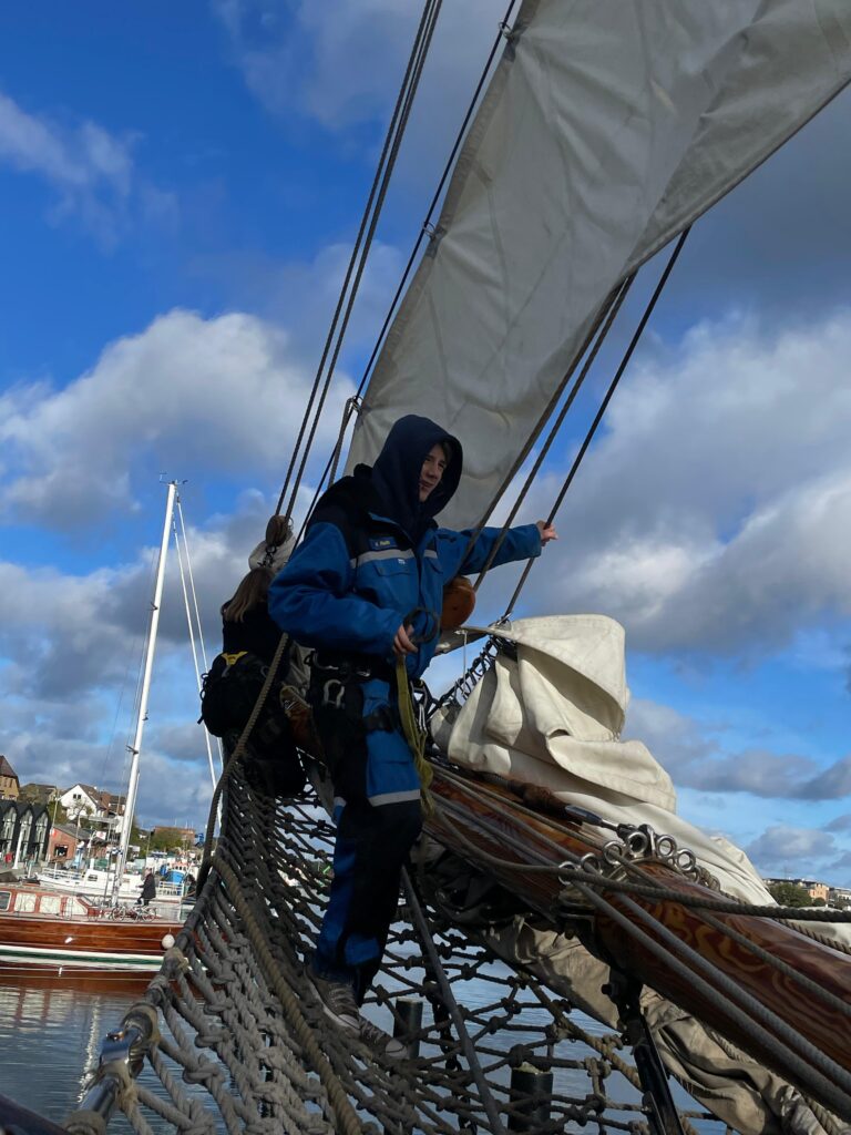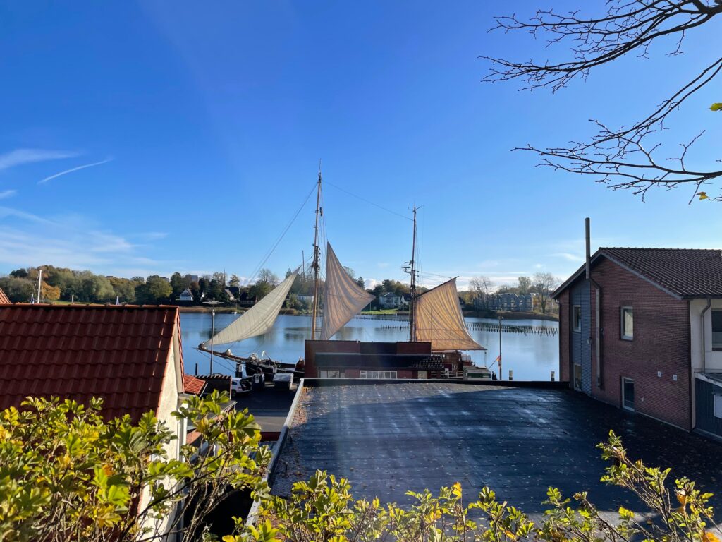 Am nächsten Morgen wurde das Schiff nach dem Frühstück klar zum Auslaufen gemacht und gegen halb Zehn konnten wir uns vom Hafen in Eckernförde verabschieden. Kurz hinter der Hafeneinfahrt konnten wir Segel setzen und die Eckernförder Bucht mit raumem Wind, Richtung Norden verlassen. Gegen 14 Uhr erreichten wir dann den Anleger von Schleimünde, an dem wir einen kurzen Stopp zum Besichtigen der Halbinsel gemacht haben. Eine gute ¾ Stunde später setzten wir unsere Reise Schlei abwärts fort nach Kappeln. Ein Highlight des Abends war, dass wir gegen 23 Uhr noch eine Nachtwanderung durch das idyllische Kappeln gemacht haben.